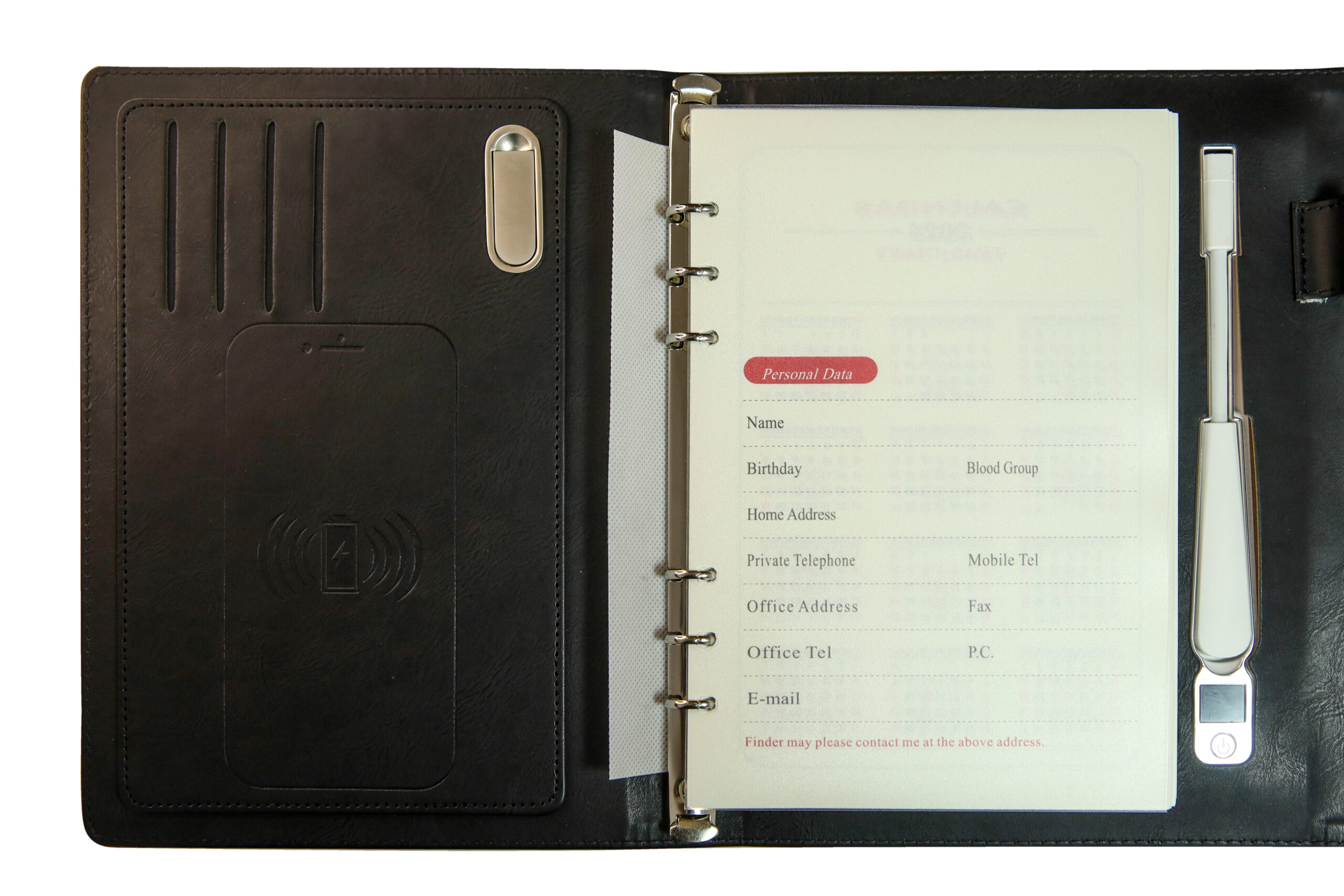 • Smart Diary With Wireless Power Bank, 64GB USB Drive, Reading Lamp, Passport/ Documents Pocket & Debit/ Credit ID Card Pockets