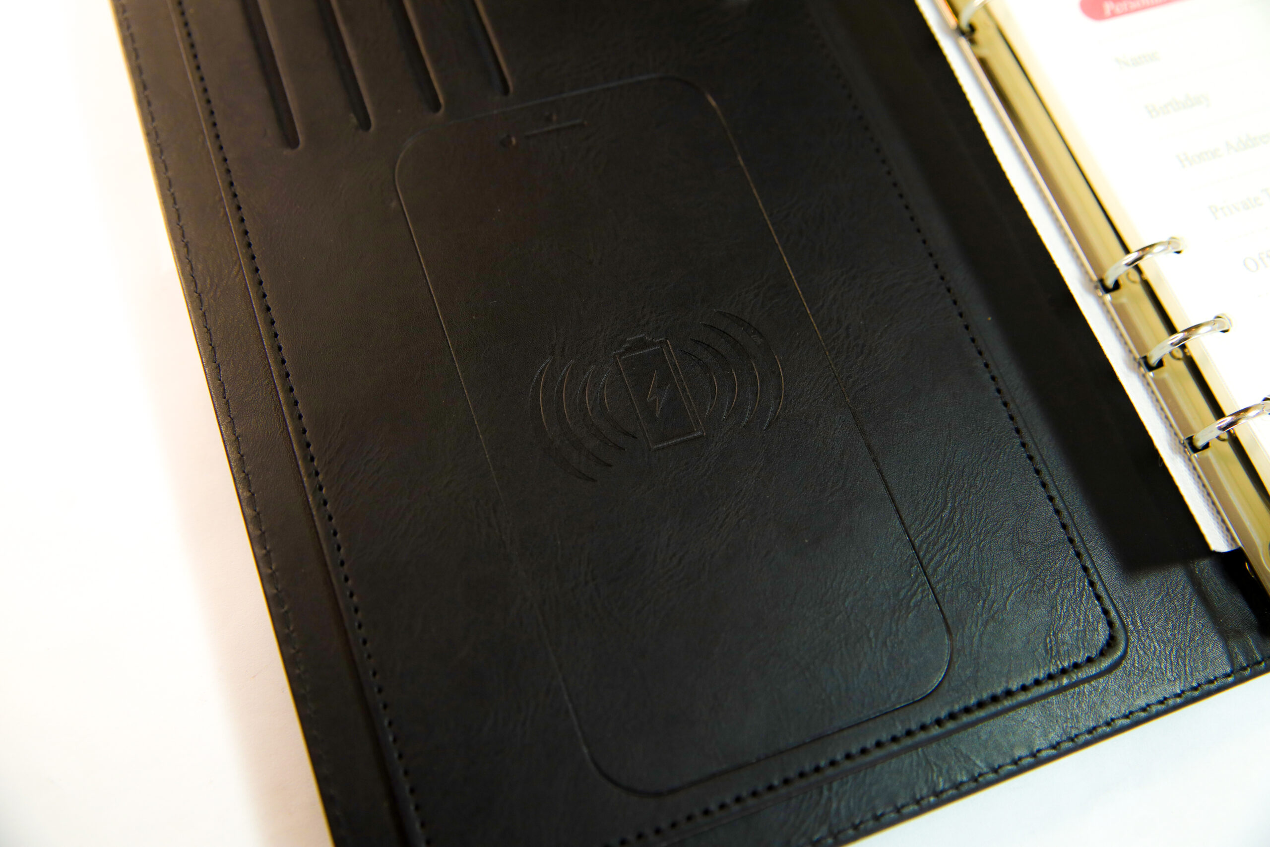 • Smart diary with built-in power bank for wireless and wired charging